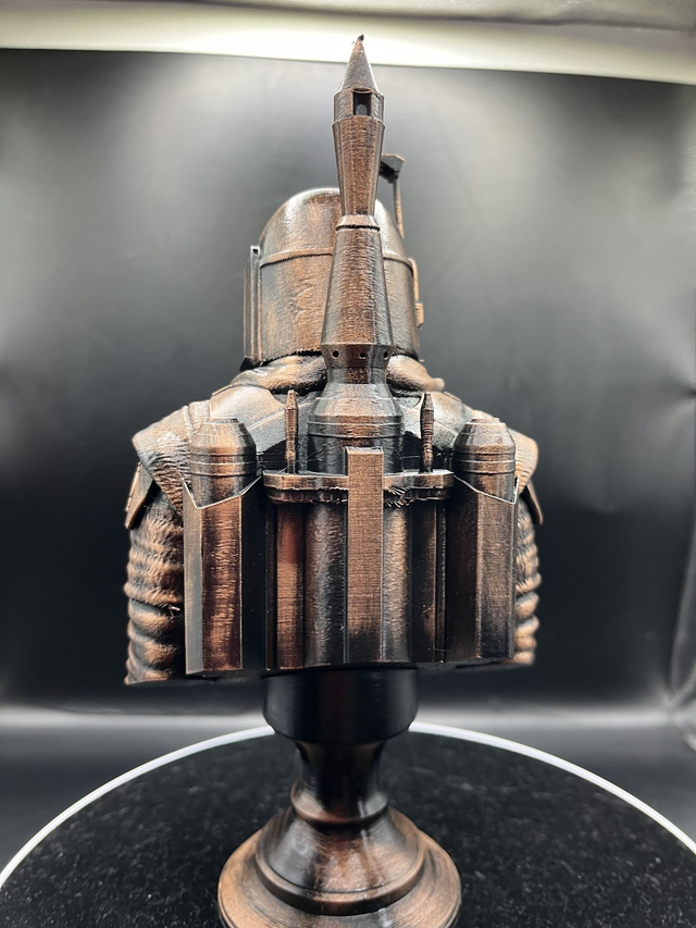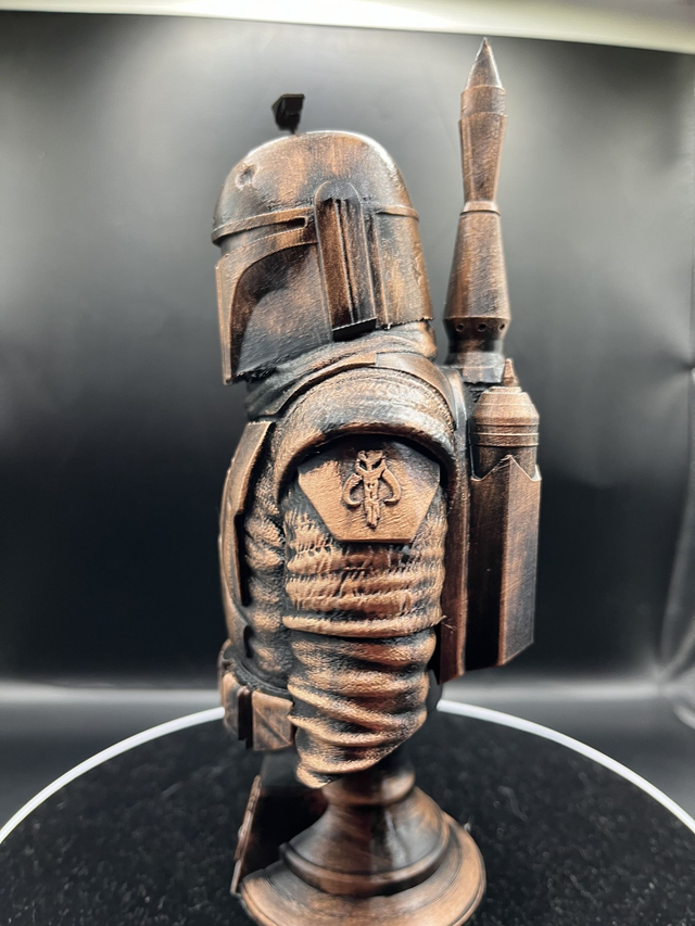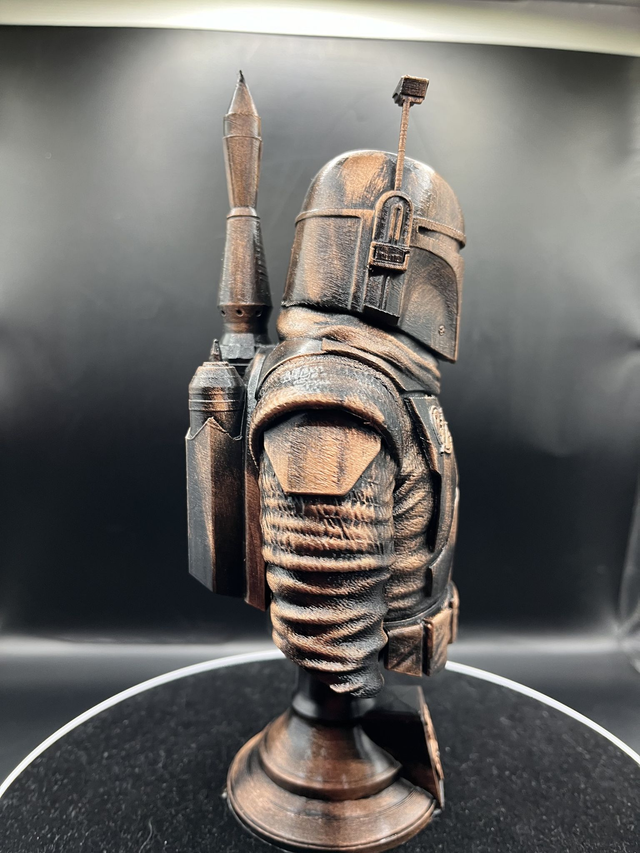 Introducing the Boba Fett Bust, meticulously made to order and hand-painted for a stunning finish. Utilizing the latest in PLA printing technology, this iconic Star Wars character is brought to life in exceptional detail. Ideal for collectors, enthusiasts, and fans alike, this Boba Fett Bust is a must-have addition to any collection. With its high-quality construction and individualized craftsmanship, it's sure to become the centerpiece of any room. Perfect for displaying on bookshelves, desks, or mantels, this Boba Fett Bust is a true marvel of 3D printing technology and artistic precision. Order yours today and experience the magic of Boba Fett in your home.