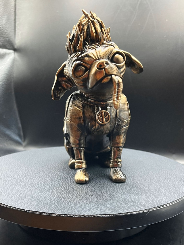 Introducing our one-of-a-kind Dogpool figurine, resin printed and hand painted with incredible attention to detail. Each piece is made to order, ensuring you receive a unique and beloved addition to your collection. This charming figurine is perfect for dog lovers and comic enthusiasts alike, with its playful and quirky design. Add it to your desk, bookshelf or display case for a pop of personality that's sure to impress. Order now and experience the quality and craftsmanship that sets our pieces apart.