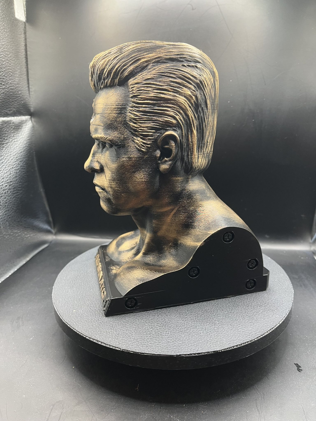 Introducing our Terminator bust, a stunning piece of 3D art that brings the iconic cyborg to life. Made to order with PLA printing technology, each Terminator bust is expertly crafted by our team and hand-painted with incredible attention to detail. Using a file by Sanix, we ensure each Terminator bust is accurate and true to the original design. Perfect as a centerpiece in any sci-fi collection or as a standout display piece on your bookshelf, this Terminator bust is a must-have for fans of the franchise. Get your own today and bring the future war to your home!